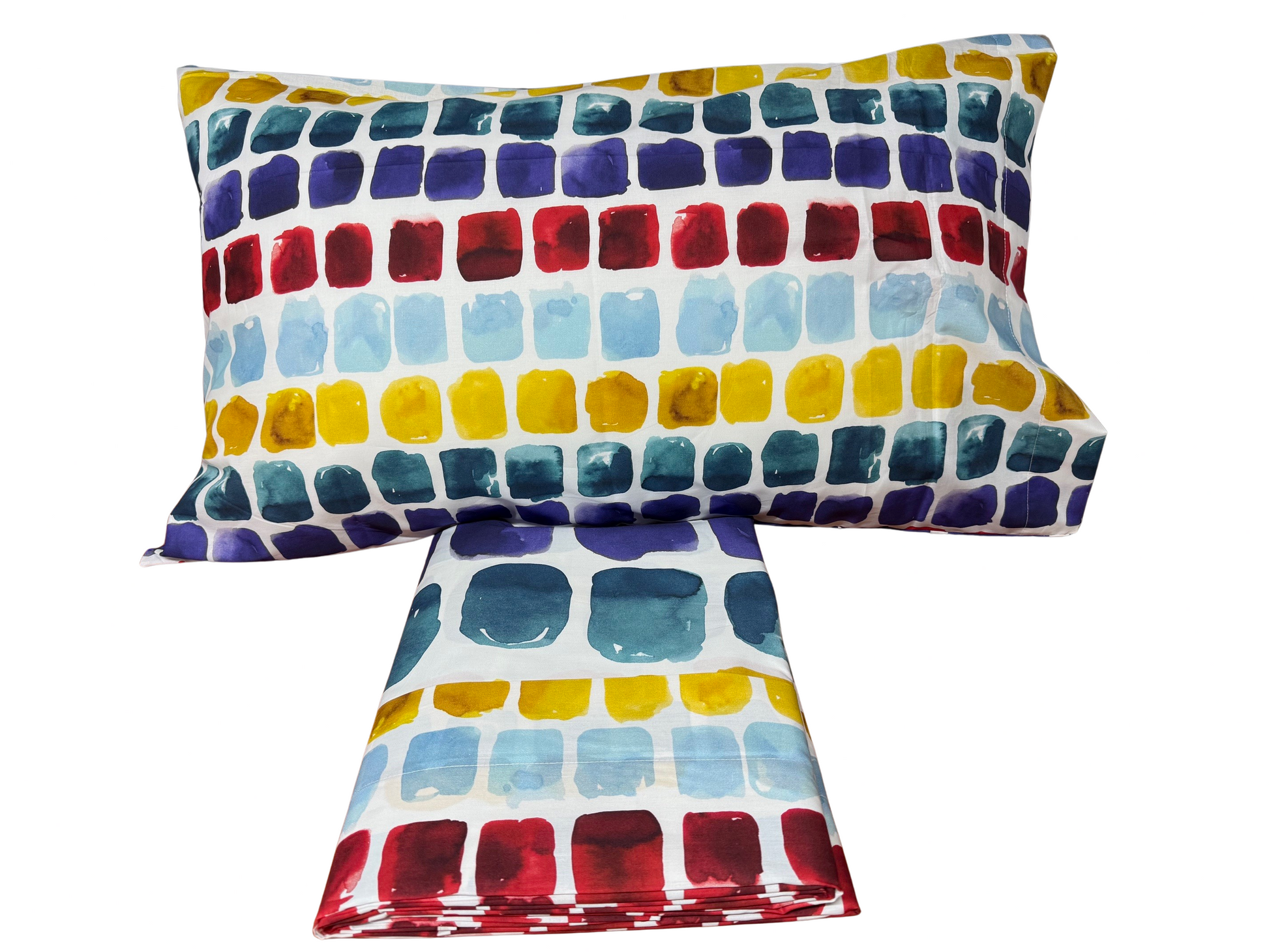 Le federa coordinate completano il set, assicurando un look armonioso e vivace grazie alla fantasia colorata.
