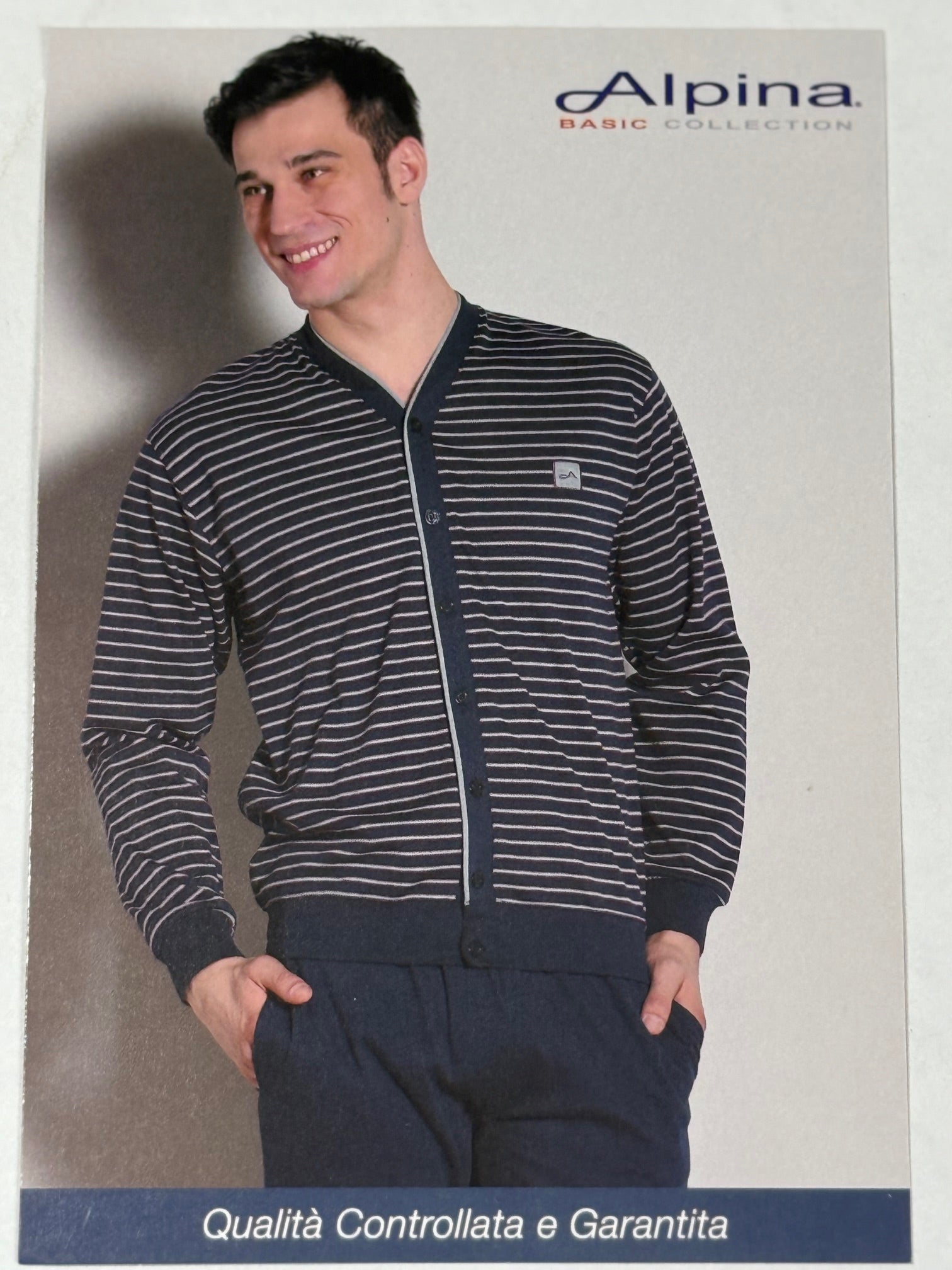 Alpina Pigiama da uomo in Puro Cotone Interlock abbottonato davanti art. Rocco