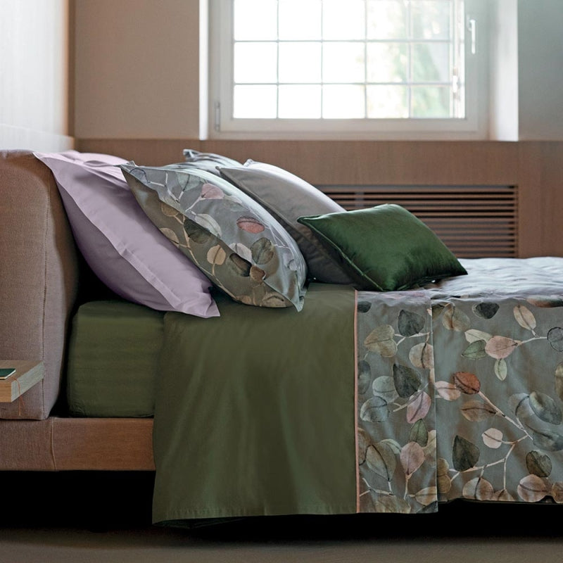 Ispirata alla filosofia giapponese del Wabi-Sabi, la collezione SABI SABI ne interpreta i principi per rendere omaggio alla spontaneità della natura e alle sue imperfezioni, alla bellezza dei piccoli gesti e alla capacità di accogliere ciò che viene. Il disegno stampato su percalle svela la spontaneità della natura e la sua commovente capacità di resistere al rigido clima invernale. Il copripiumino, il lenzuolo e il quilt sono proposti nell’iconico burgundy oppure in una raffinata versione grigia che dialoga con i verdi ed una terza nei toni caldi dello zucca.