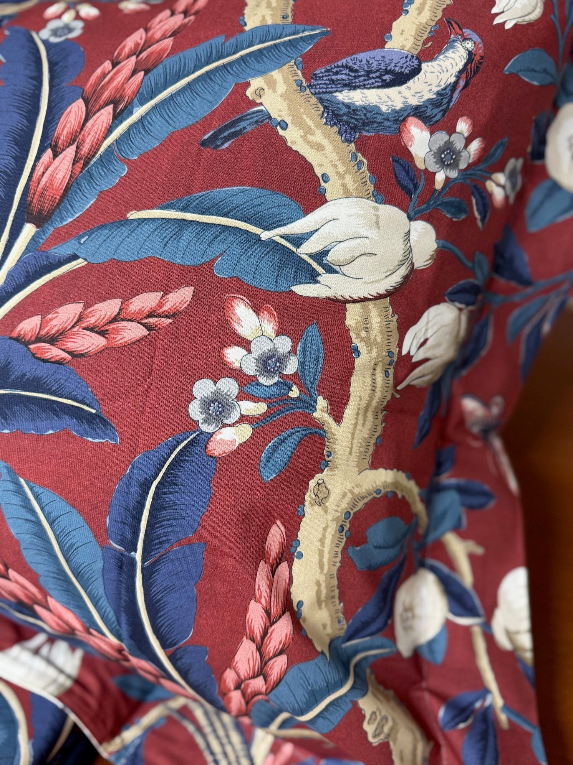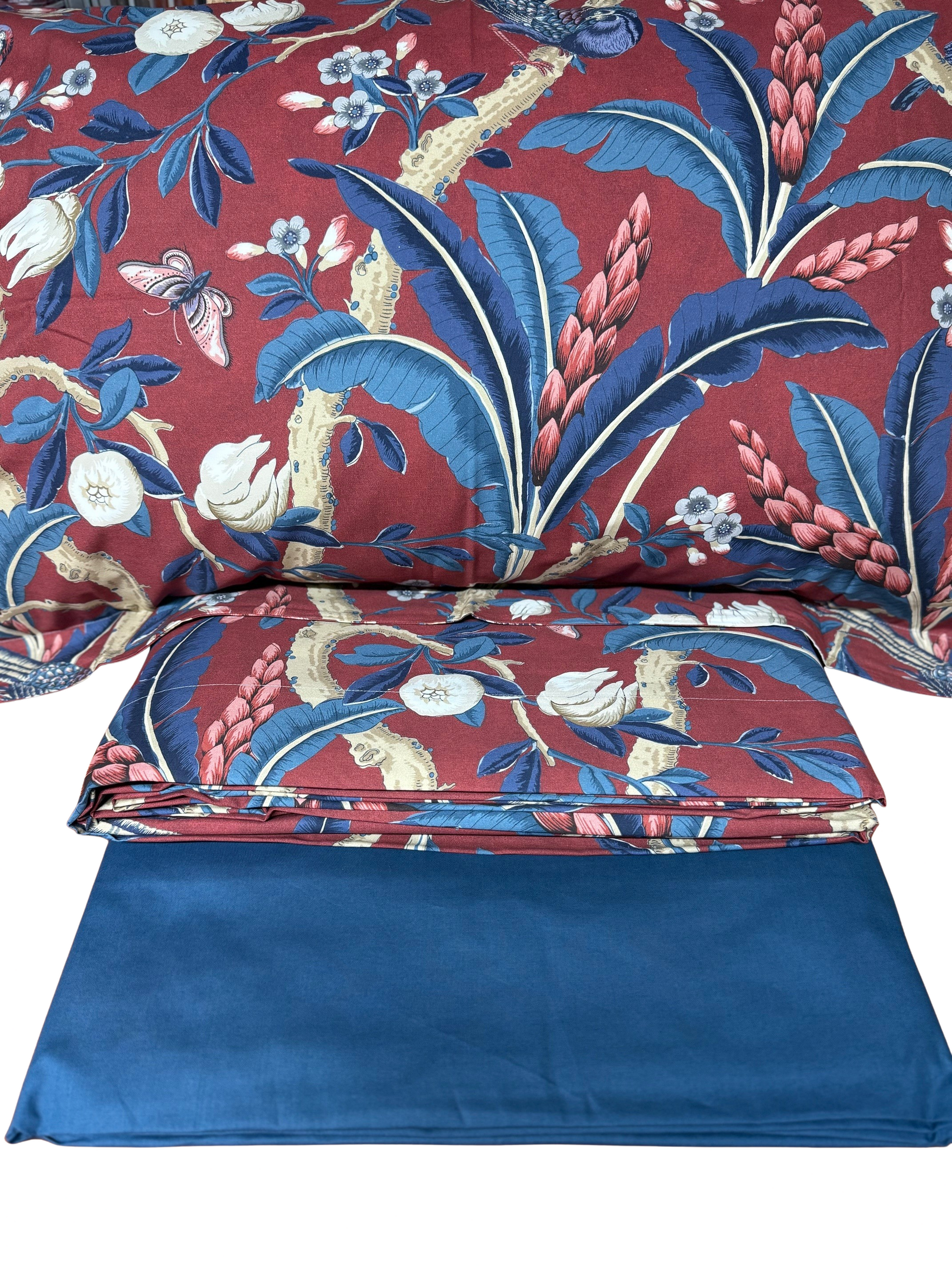 Lasciati incantare dal lenzuolo matrimoniale Mirabello con fantasia foliage, un’opera d’arte tessile che porta in camera da letto la poesia della natura. In un’intricata vegetazione si intrecciano farfalle e uccellini delicati, dettagli che regalano freschezza e leggerezza all’ambiente.