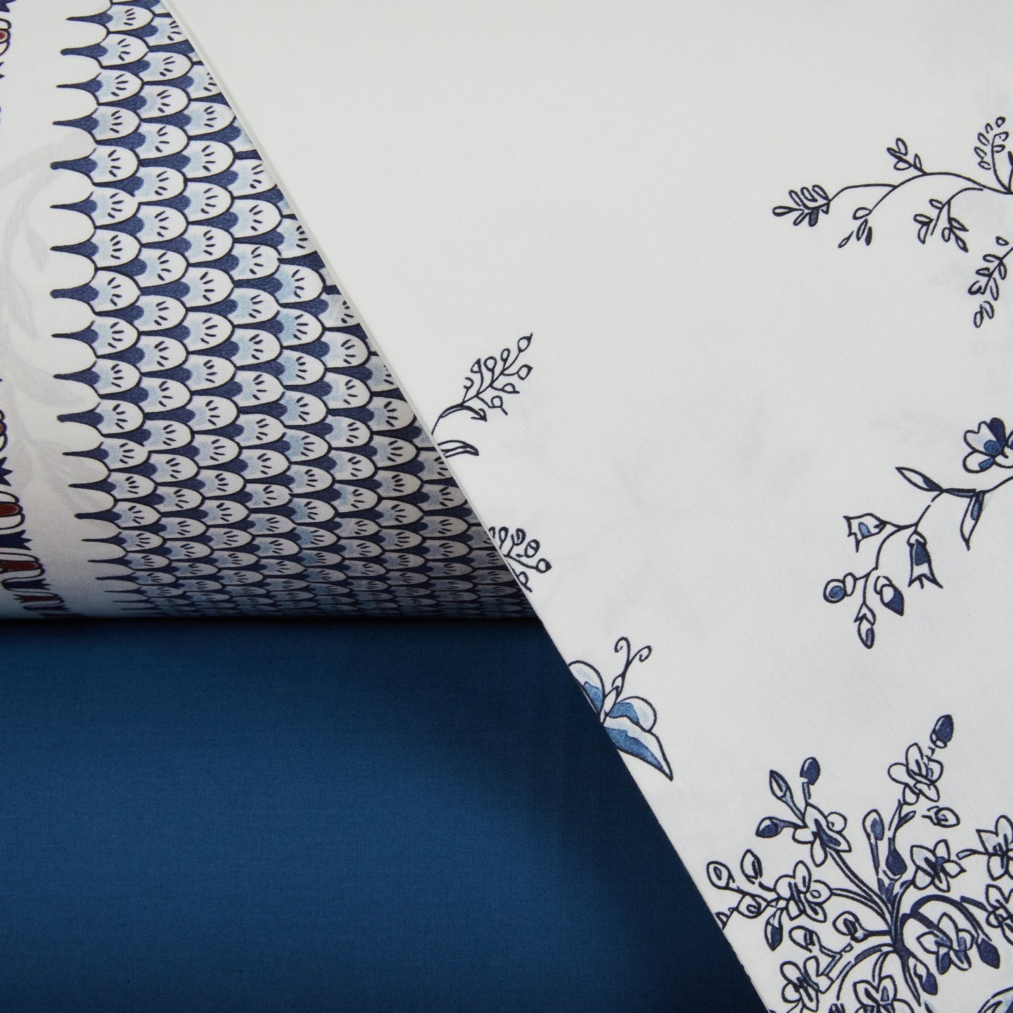 Grazie al concetto esclusivo di Mirabello, il “lenzuolo bello di giorno e di notte”, rigirando la balza la stampa si mostra a vista, trasformando il lenzuolo in un elegante copriletto.