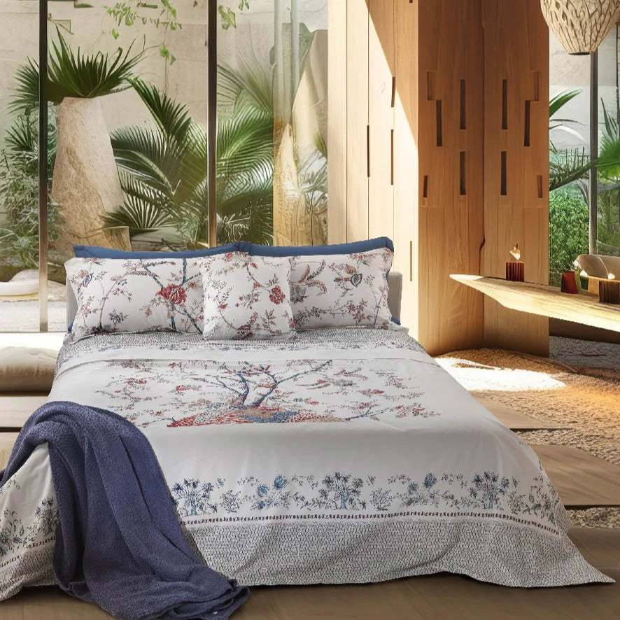Il lenzuolo matrimoniale Mirabello con fantasia albero della vita è un omaggio alla natura e ai suoi simboli più preziosi. L’albero, intreccio armonioso di rami e foglie, rappresenta forza, energia e rinascita, portando nella camera da letto un messaggio di equilibrio e serenità.