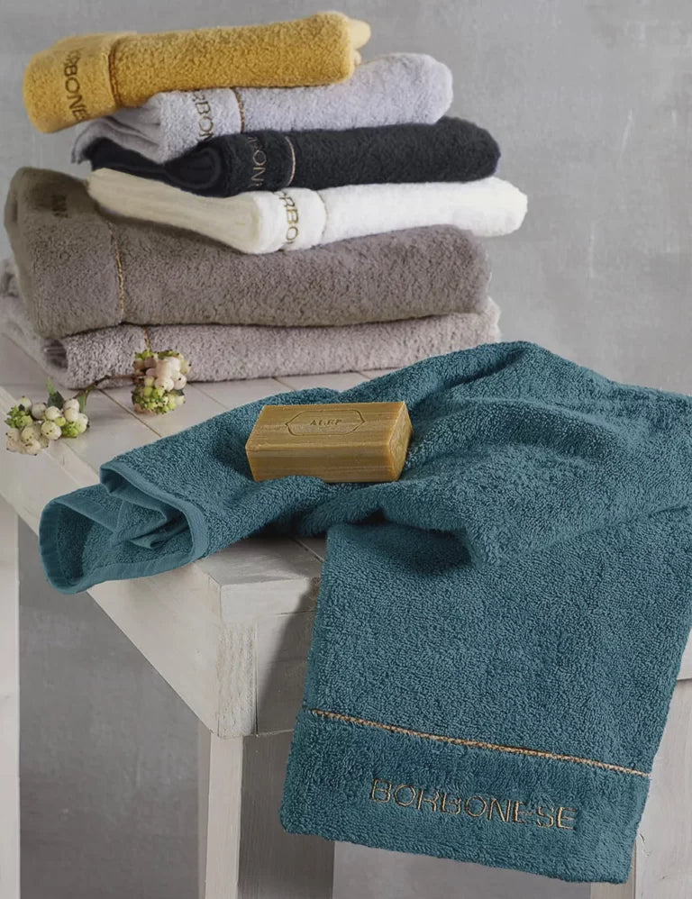 Le coppie sono proposte in raffinata tinta unita, impreziosite dal logo Borbonese ricamato in elegante colore tortora, dettaglio distintivo che esprime classe e sobrietà. A rendere il set ancora più esclusivo è il bordino applicato su entrambi gli asciugamani, decorato con la tipica e iconica fantasia “Occhio di Pernice”, simbolo inconfondibile del brand Borbonese.