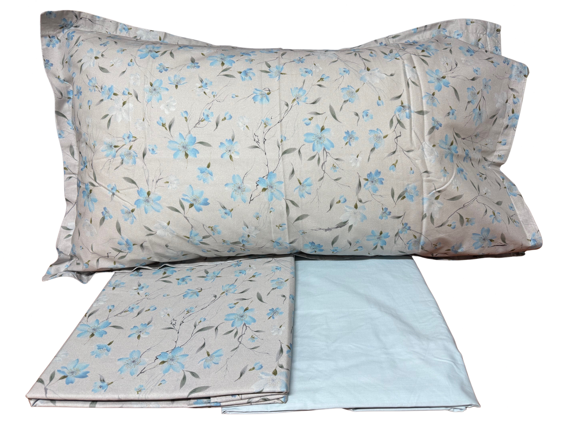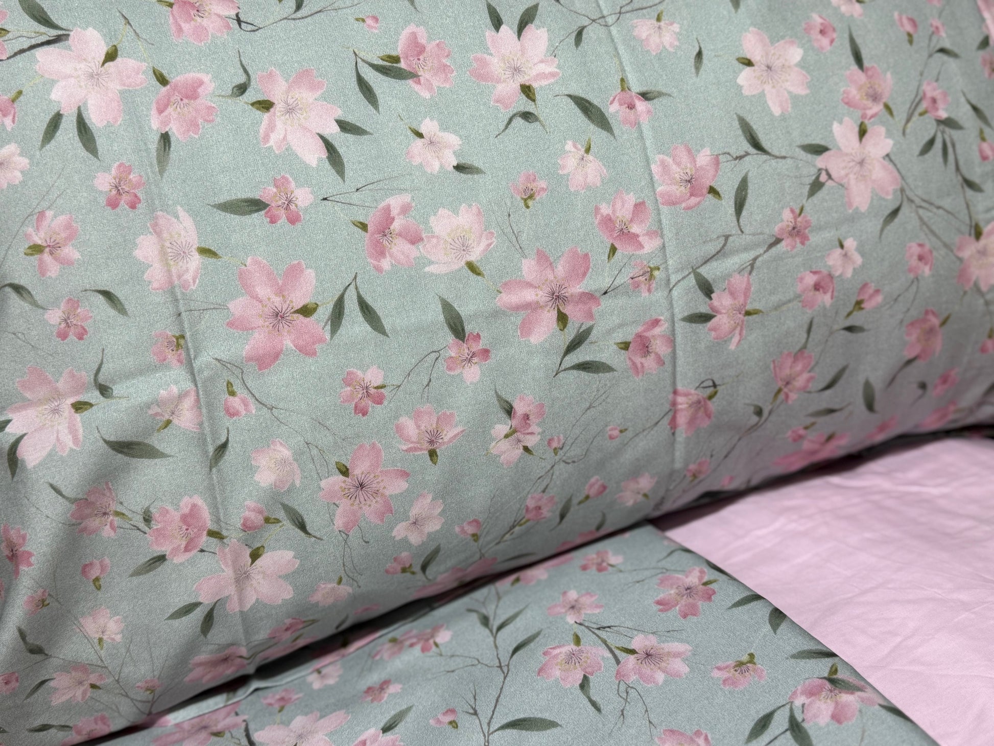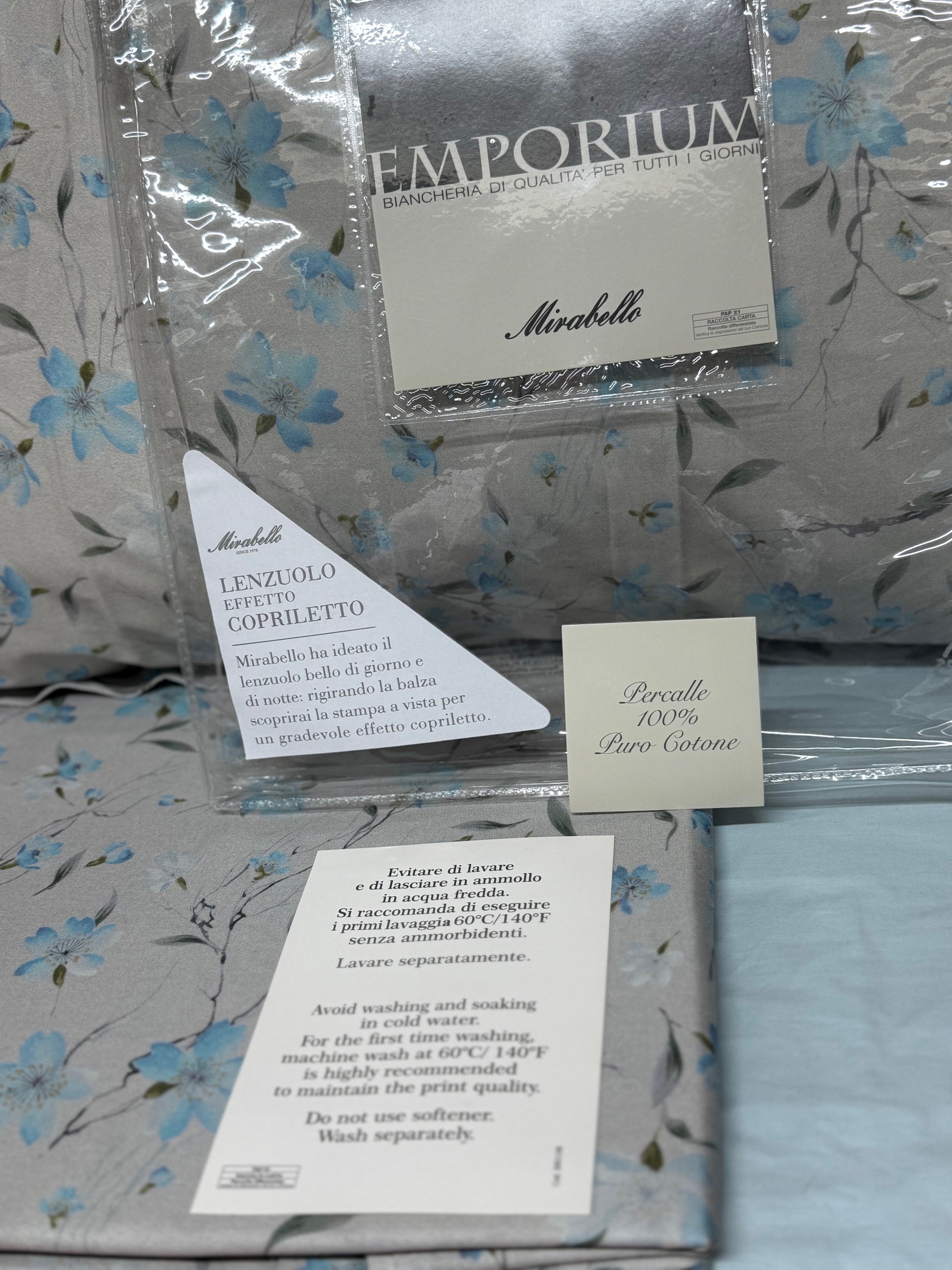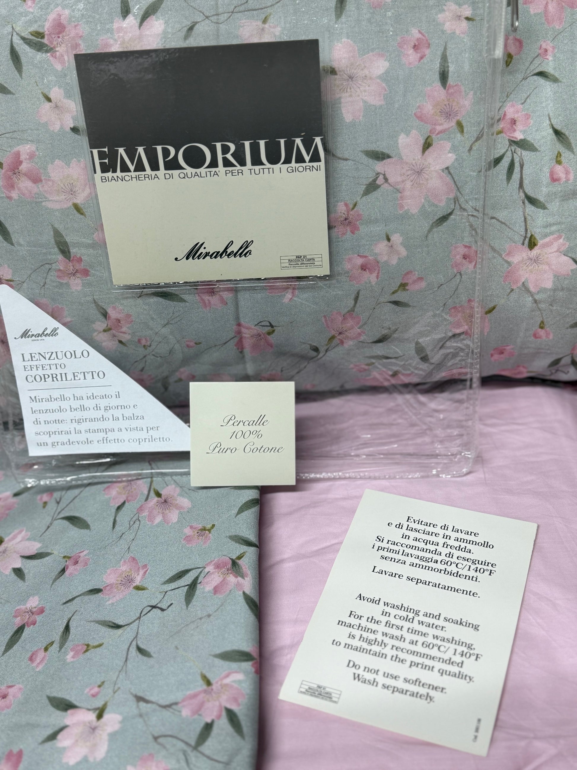 Mirabello Completo Lenzuola letto singolo in fine Percalle di Cotone, Effetto copriletto con Doppia Balza Art. Cherry tree