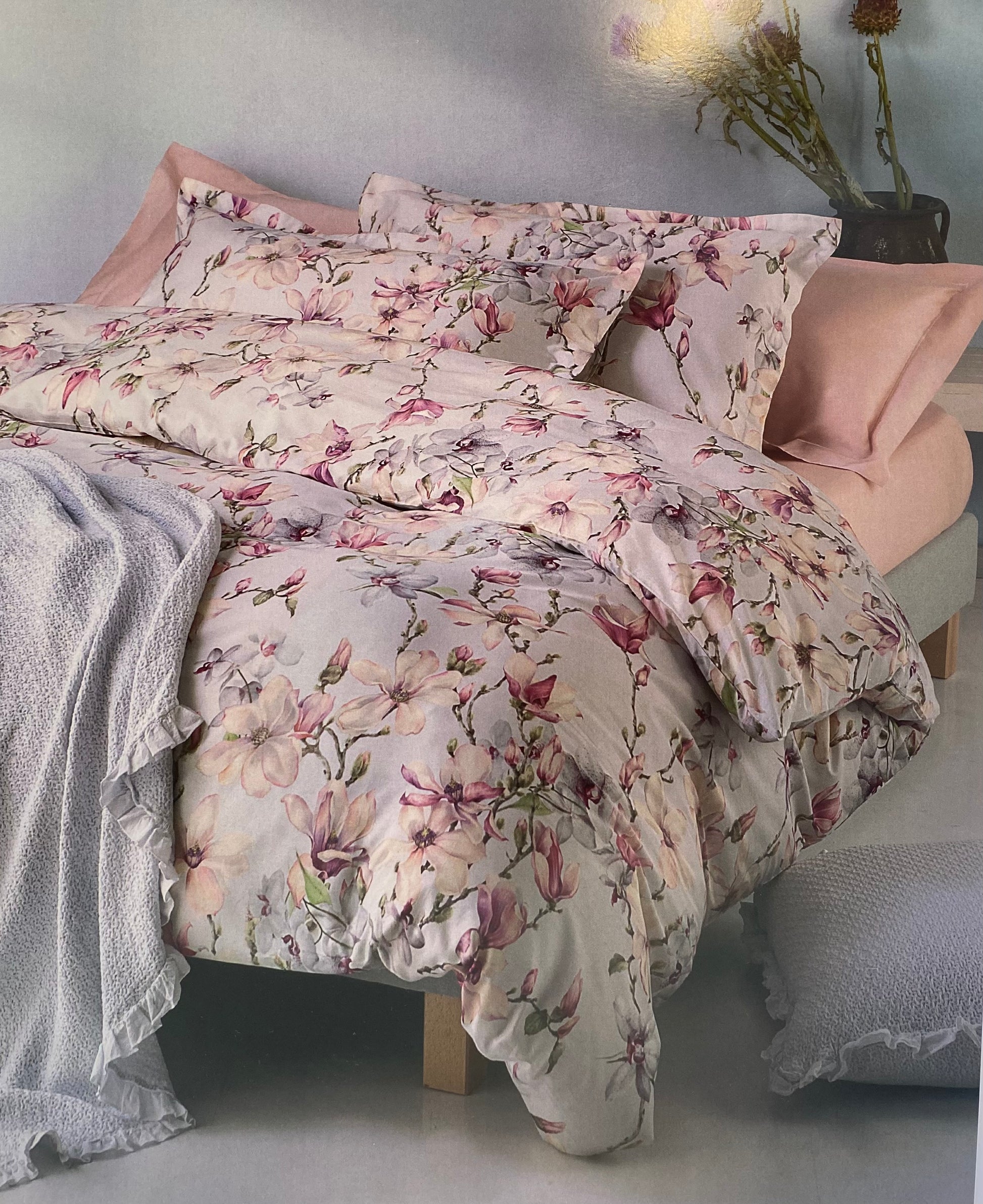 • La parure copripiumino matrimoniale Mirabello è realizzata in meraviglioso percalle di puro cotone, un tessuto pregiato e compatto che unisce eleganza, comfort e durata nel tempo.